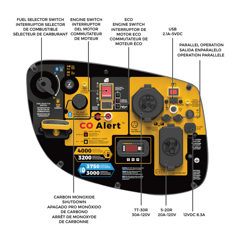 SKU wh03242Firman Dual Fuel Inverter Portable Generator 4000W Electric Start with CO Alert