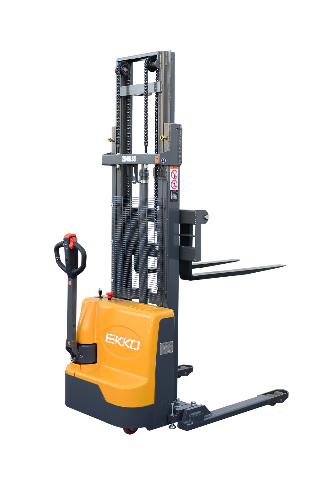 The EKKO EB12EA Electric Straddle Stacker is designed with the combination of the versatility of a forklift, reach truck and a walkie stacker. It is ideal for loading and unloading trucks, loading docks, stock rooms, manufacturing floors and warehousing.